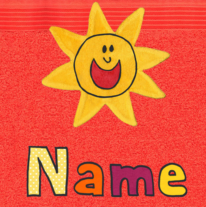Das Baby-Badtuch mit Namen, Motiv und Sonne zeichnet sich durch die leuchtende Sonne, die lustigen und fröhlichen Motive aus und dass die Namen für jedes Tuch individuell gewählt werden können.