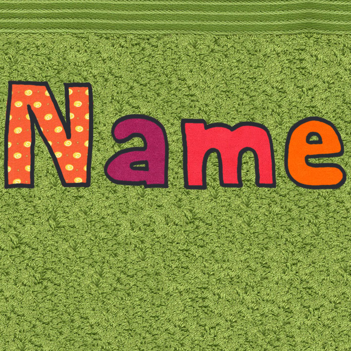 Beim Namen werden die Stoffe für die Buchstaben bei jedem Tuch persönlich ausgesucht.
