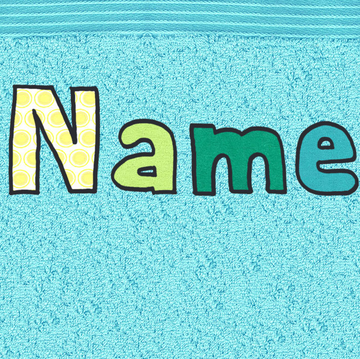 Beim Namen werden die Stoffe für die Buchstaben bei jedem Tuch persönlich ausgesucht.