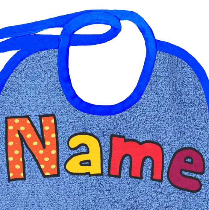 Beim Namen werden die Stoffe für die Buchstaben bei jedem Lätzli persönlich ausgesucht.