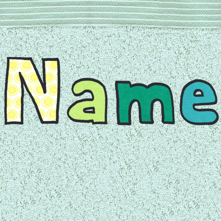 Beim Namen werden die Stoffe für die Buchstaben bei jedem Tuch persönlich ausgesucht.