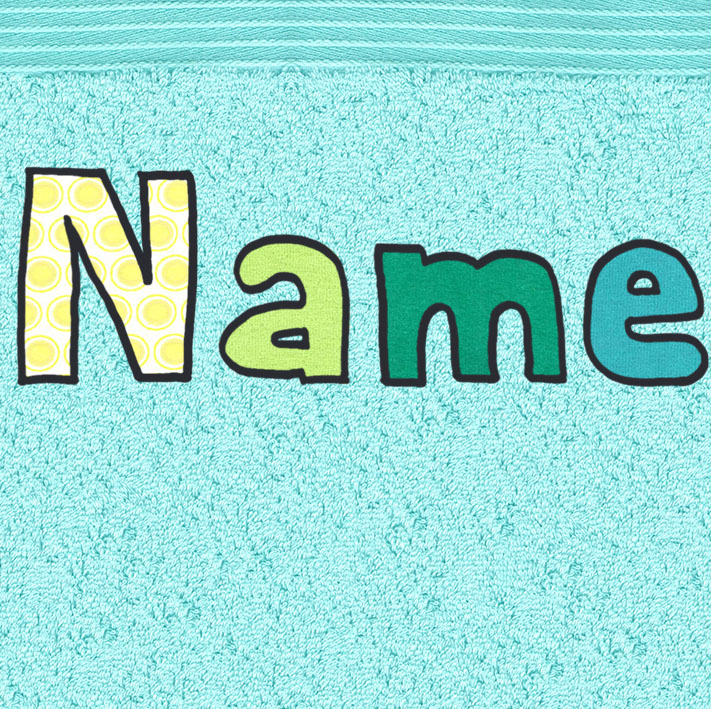 Beim Namen werden die Stoffe für die Buchstaben bei jedem Tuch persönlich ausgesucht.